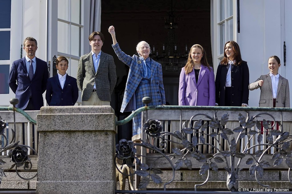 Bijgestaan door haar zoon Frederik, zijn echtgenote Mary en hun kinderen Christian, Isabella, Vincent en Josephine, verscheen de jarige vorstin aan het eind van de ochtend op de veranda. Belangstellenden, die waren uitgedost met Deense vlaggetjes, riepen driemaal hoera voor de koningin. Daarna begon een fanfare de muziek van de parade te spelen, zo is te zien in een video die het Deense hof deelt op Instagram