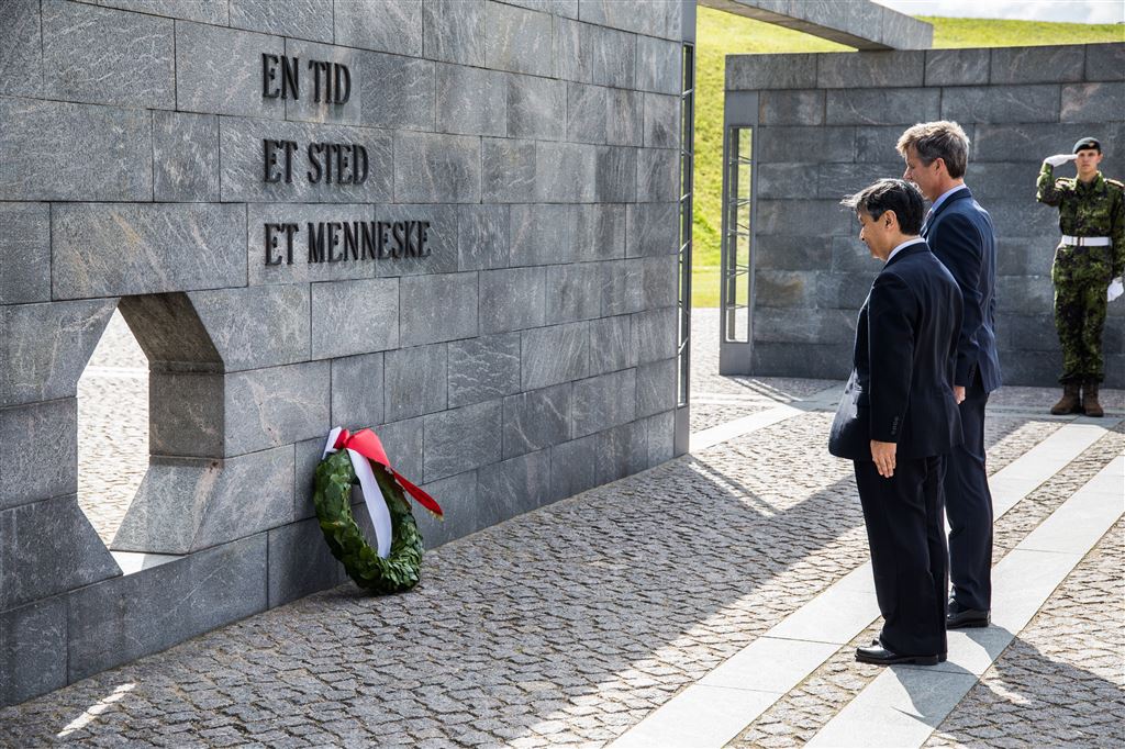 De beide kroonprinsen waren vrijdagmorgen al in de citadel van van Kopenhagen, vlak bij het koninklijk paleizencomplex Amalienborg, voor een kranslegging op het Prinsessenbastion bij het monument ter ere van Deense militairen die na 1948 bij vredesoperaties zijn omgekomen. Naruhito en Frederik bekeken ook de herdenkingsmuur, waarop de namen staan van de onder meer in Afghanistan gesneuvelde militairen.