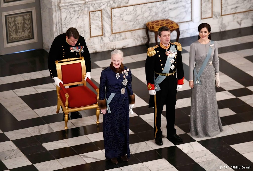 De Deense koningin Margrethe heeft donderdag weer veel nieuwjaarswensen in ontvangst genomen. In paleis Christiansborg kwam donderdag het corps diplomatique langs. Ook kroonprins Frederik en zijn vrouw Mary schudden alle handjes.