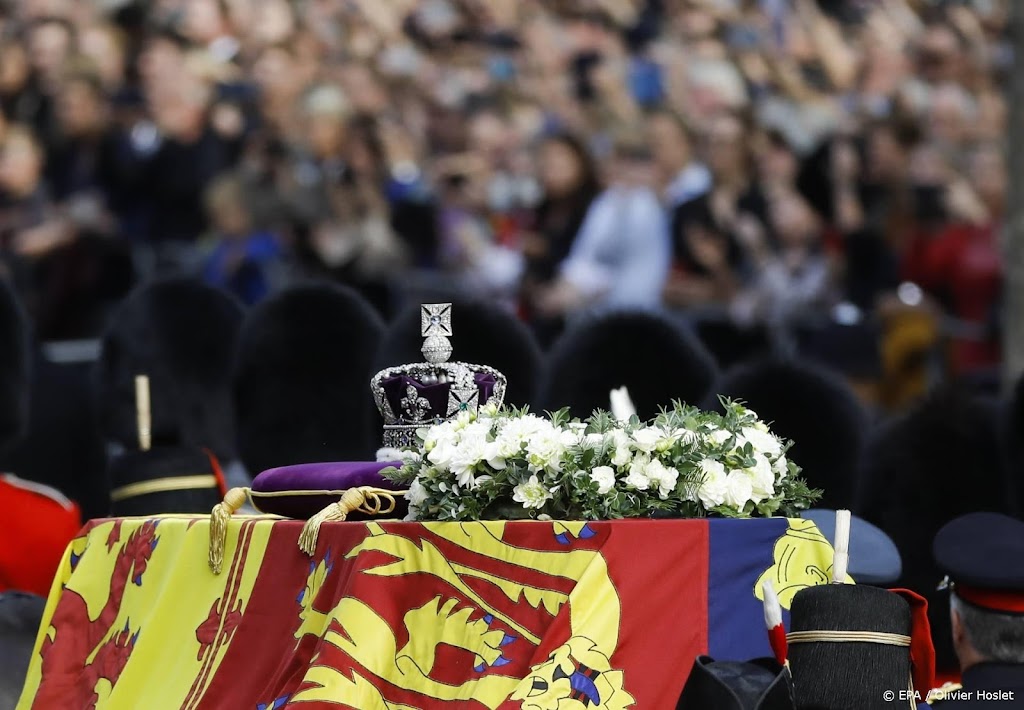 De kist van koningin Elizabeth, die donderdag 8 september op het Schotse Balmoral Castle overleed, wordt maandag om 10.44 uur lokale tijd van Westminster Hall naar Westminster Abbey vervoerd. Daar vindt de uitvaart plaats.
