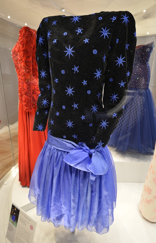 Het gaat om een korte avondjurk van de Marokkaans-Britse ontwerper Jacques Azagury. Diana, de ex-vrouw van de huidige koning Charles, droeg de jurk twee keer: bij een diner van de burgemeester van Florence in Italië, waar ze samen met Charles was, en tijdens een optreden van het Vancouver Symphony Orchestra in Canada.