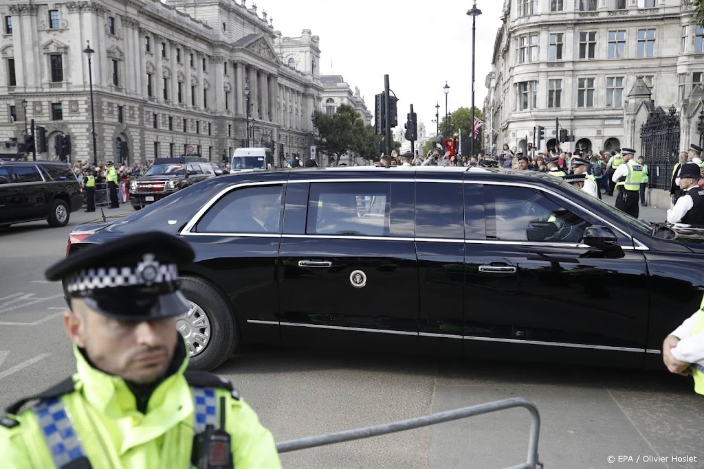 Kort voor aanvang van de uitvaartplechtigheid in Westminster Abbey van koningin Elizabeth komen nationale en internationale hoogwaardigheidsbekleders op de plek waar zij de laatste eer bewijzen aan de vorstin die op donderdag 8 september op 96-jarige leeftijd overleed.