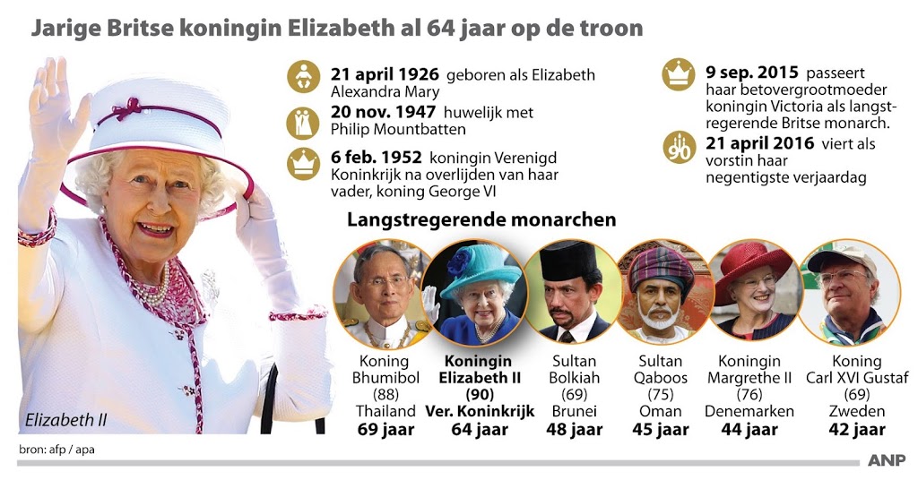 De Britse koningin Elizabeth wordt donderdag negentig jaar. De vorstin brengt de dag door in Windsor. Samen met prins Philip wandelt Elizabeth op haar verjaardag door Windsor. Vanaf Windsor Castle, waar ze bij voorkeur woont, loopt ze naar het beeld van koningin Victoria, aan de voet van het mottekasteel. Daar onthult ze een plaquette voor ‘The Queen’s Walkway’, een wandelroute door het dorp.