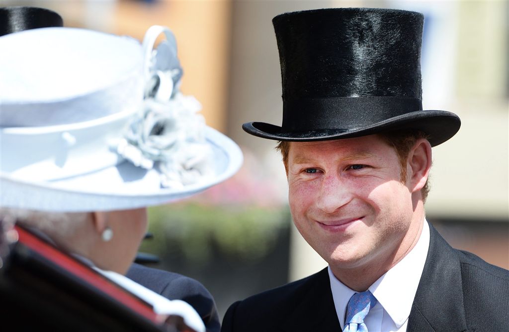 ASCOT – Koningin Elizabeth heeft met een groot deel van haar familie de eerste dag bijgewoond van de paardenraces op Ascot. Traditiegetrouw arriveerde de koninklijke familie per koets op de renbaan, met heel opvallend dit keer ook prins Harry, compleet met hoge hoed.