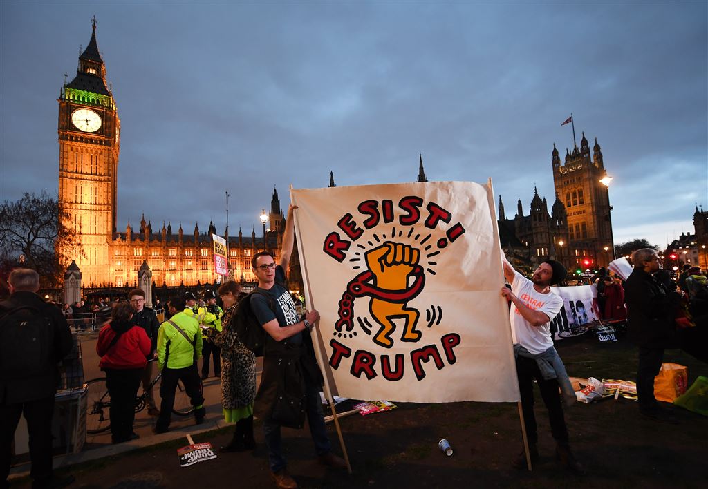 Maandag behandelde het Lagerhuis beide petities. Volgens Reuters gaat het om een ‘symbolische discussie’ waarin nog niet gedwongen kan worden de uitnodiging aan Trump in te trekken. Toch was de behandeling voor duizenden Britten een gelegenheid om te demonstreren.