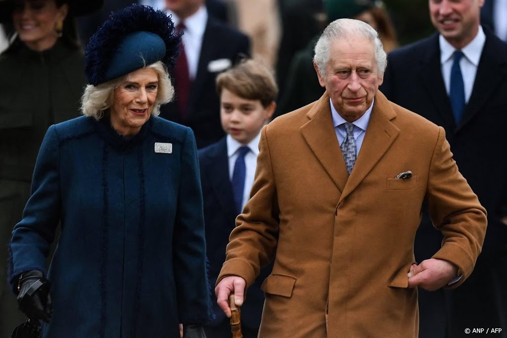 Koning Charles, koningin Camilla en andere leden van de koninklijke familie vieren kerstochtend traditiegetrouw in de kerk. De familie gaat naar de ochtenddienst in Sandringham Church.