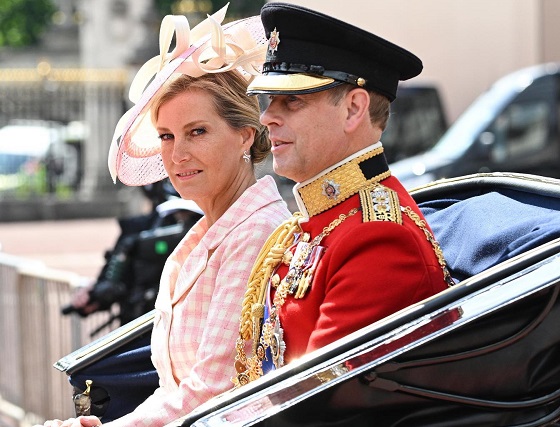 In een tweede koets zaten prins Edward en zijn vrouw Sophie met hun kinderen en een derde rijtuig was er voor de hertog en hertogin van Gloucester en de echtgenoot van prinses Anne. Andere familieleden, onder wie naar verluidt prins Harry en zijn vrouw Meghan, volgden de ceremonie op Horse Guards Parade vanaf een balkon.