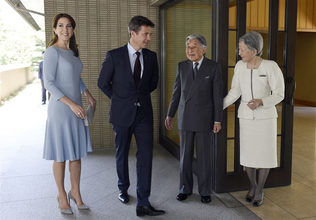 TOKIO – De Deense kroonprins Frederik en zijn vrouw Mary zijn zaterdag in Japan verwelkomd door keizer Akihito en keizerin Michiko bij het keizerlijk paleis in Tokio waar een lunch op het programma stond. Eerder op de dag brachten ze een bezoek aan een modeschool in Tokio. Daar waren ze onder meer aanwezig bij een workshop.