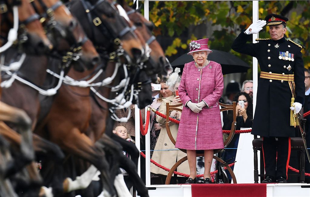 Koningin Elizabeth zag donderdag tientallen paarden met ruiters in gala-uniform aan zich voorbijtrekken. De koningin inspecteerde in Hyde Park in Londen de King’s Troop Royal Horse Artillery ter gelegenheid van het zeventigjarig jubileum van het erekorps.