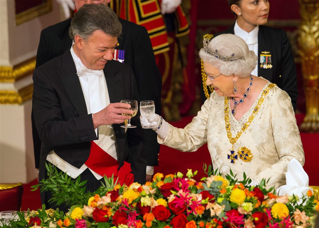 Koningin Elizabeth en haar echtgenoot prins Philip hebben donderdagochtend afscheid genomen van de president van Colombia Juan Manuel Santos. Hij logeerde de afgelopen twee nachten op Buckingham Palace in verband met zijn staatsbezoek aan het Verenigd Koninkrijk.