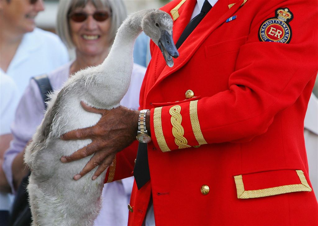 De zwanen op de Theems worden elke zomer geteld. De jongen worden gewogen, opgemeten, onderzocht en geringd. Die traditie gaat terug tot de twaalfde eeuw, toen zwaan een delicatesse was en graag werd opgediend tijdens de feestbanketten van de koninklijke familie. Sindsdien behoren alle niet-gemerkte zwanen in open water toe aan het Britse koningshuis.