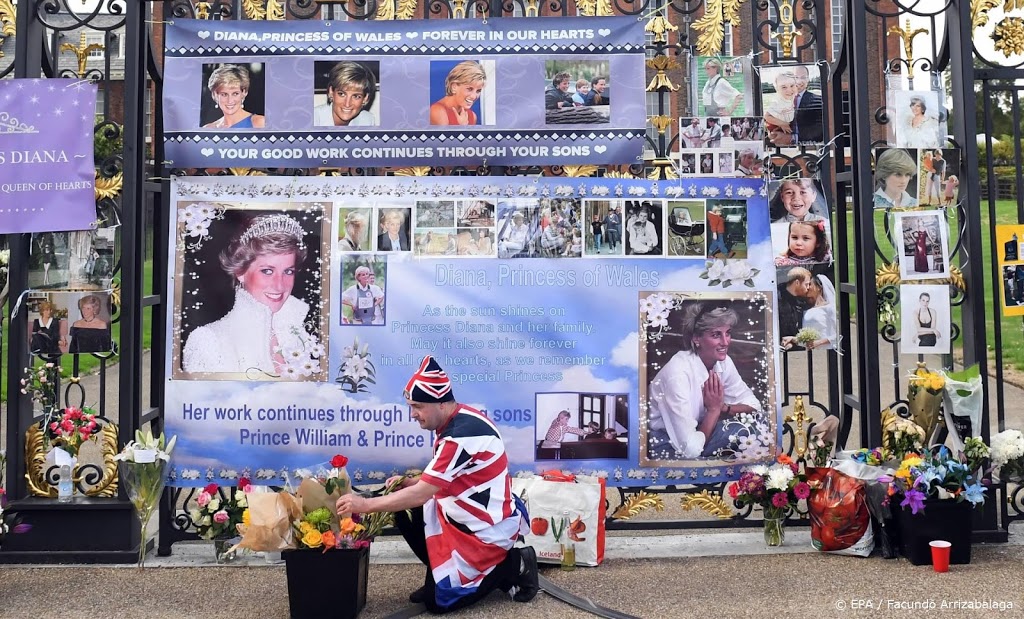 Ieder jaar leggen fans bloemen neer en hangen ze foto’s van Diana en haar kinderen prins William en prins Harry op. Vrijdag werd de eerste banner aan het paleishek bevestigd. “Voor altijd in ons hart”, staat op het doek waarop foto’s staan afgebeeld van Diana door de jaren heen. “Je goede werk wordt voortgezet door je zoon.”