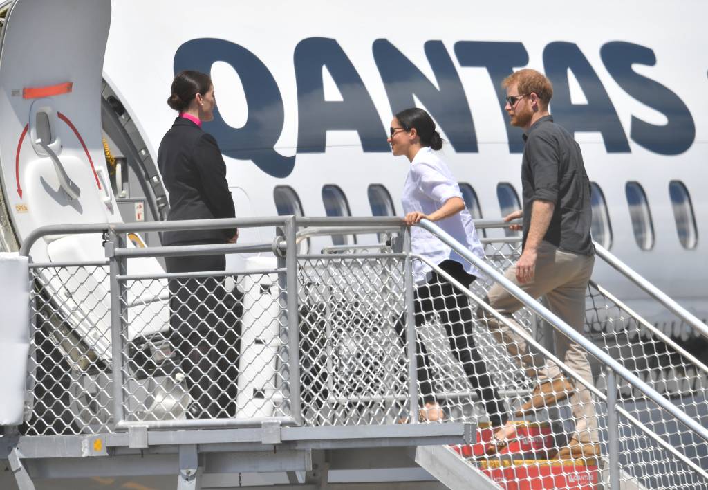 Direct nadat hij hand in hand met zijn vrouw uit het vliegtuig stapte, inspecteerde Harry een erewacht van honderd Fijische militairen. Vervolgens stapten de Sussexes in de auto voor een korte ontmoeting met president Jioji Konrote. Langs de kant van de weg stonden duizenden mensen te zwaaien en klappen naar het paar.