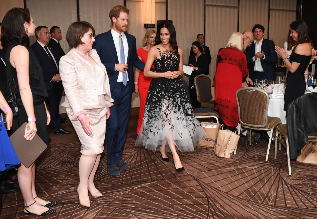 Op de prijsuitreiking stal Meghan de show. Ze droeg een zwart-witte japon met een vogelprint, ontworpen door Oscar de la Renta.