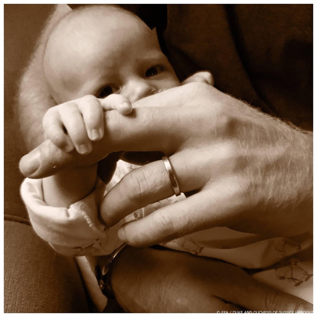Archie werd op 6 mei geboren. Twee dagen daarna toonden Harry en Meghan het kleintje voor het eerst aan de wereld. Op Moederdag deelde Meghan een foto van de voetjes van Archie. Daarna was het wachten op Vaderdag. Op deze foto is te zien hoe Archie, in de armen van Harry, zijn vaders vinger vasthoudt en nieuwsgierig in de camera kijkt.