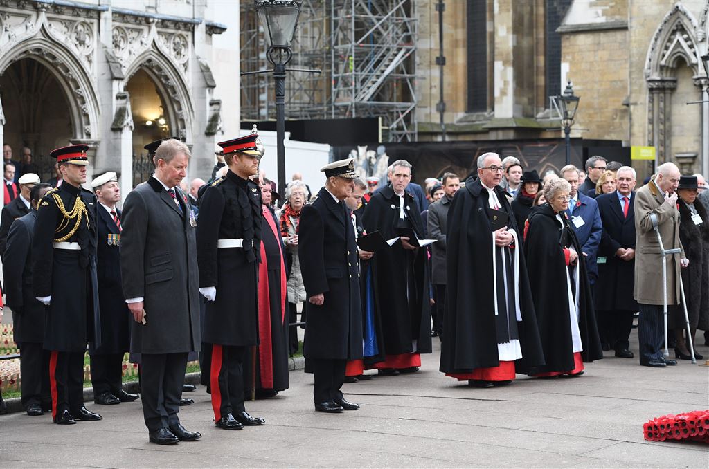 Tijdens de jaarlijkse dodenherdenking plaatsten de prins en de hertog van Edinburgh beiden een klein houten kruis in een groot kruis van klaprozen, poppies genaamd, waarmee Groot-Brittannië sinds de Eerste Wereldoorlog oorlogsslachtoffer herdenkt. Daarna namen ze twee minuten stilte in acht, zoals de traditie sinds 1928 voorschrijft.