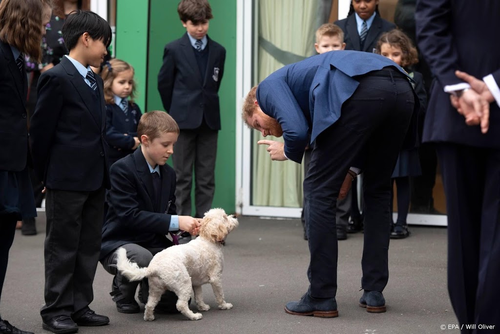 Winnie, het hondje van onderwijzeres Monica McCarthy, trok de aandacht van de prins. Tijdens het aaien likte hij Harry’s hand. En Winnie reageerde gehoorzaam toen Harry met zijn vinger op de lippen de hond opdroeg niet te blaffen.