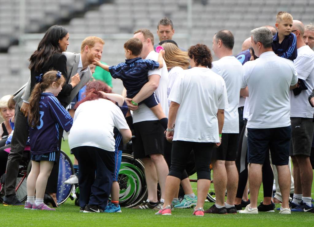 Het tafereel speelde zich af toen Harry en Meghan in het Croke Park-stadion in Dublin waren, waar ze een demonstratie van Ierse sporten kregen. Een jongetje van vier besloot de koninklijke gasten op een bijzondere manier welkom te heten door Harry bij zijn baard te grijpen. De prins trok een pijnlijke grimas, terwijl Meghan lachend toekeek. “Misschien krijg je zelf ook ooit een baard”, gaf Harry het jongetje mee.