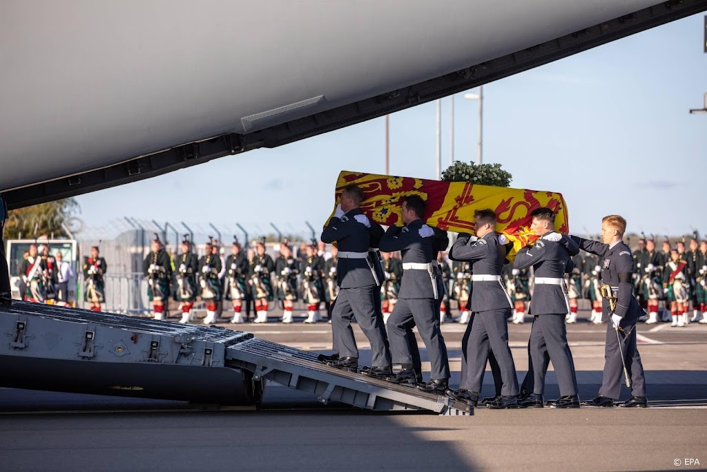 De Britse koningin Elizabeth overleed donderdag op 96-jarige leeftijd in haar Schotse landgoed Balmoral Castle. Ze werd dinsdag in het bijzijn van haar dochter prinses Anne met een militair vliegtuig van Edinburgh naar de Engelse hoofdstad gebracht. Dinsdagavond is haar kist aangekomen bij Buckingham Palace. Woensdag wordt de koningin in een processie met koning Charles en de andere royals naar het Britse parlementsgebouw gebracht, waar belangstellenden vier dagen de gelegenheid hebben Elizabeth de laatste eer te bewijzen. Er worden honderdduizenden mensen verwacht.