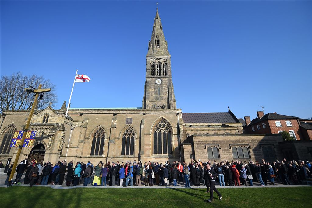 LEICESTER – Naar schatting 2000 mensen hebben maandag in de kathedraal van de Engelse stad Leicester afscheid genomen van de middeleeuwse koning Richard III. Al voor de kathedraal om 9 uur (plaatselijke tijd) openging, stond er volgens de BBC een lange rij belangstellenden. Sommigen hebben vier uur moeten wachten, voor zij de vorst konden eren.