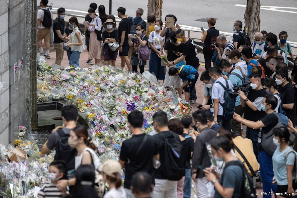 Voor het Britse consulaat in Hongkong heeft zich maandag een lange rij gevormd van mensen die hun laatste eer willen bewijzen aan koningin Elizabeth. De Britse vorstin overleed donderdag op 96-jarige leeftijd.