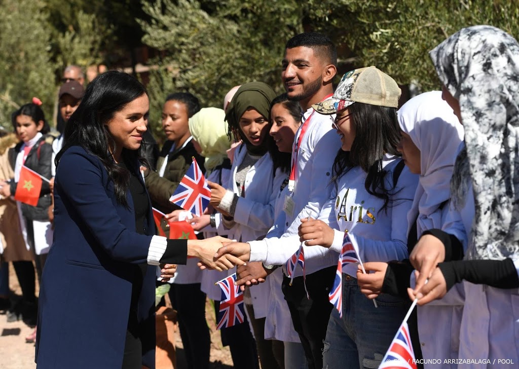 De Britse royals bezochten in Asni, in het Atlasgebergte, een van de pensions die is gebouwd om het uitvalpercentage van jonge schoolmeisjes van 12 tot 18 jaar terug te dringen. Het koppel werd ontvangen met een welkomstlied van enkele van de meisjes die in het pension verbleven. Ook kreeg de hertogin een bosje rozen van een meisje overhandigd. Harry en Meghan namen ook een kijkje in een klaslokaal. Ze spraken hier met studentes die hard aan het leren waren voor examens.