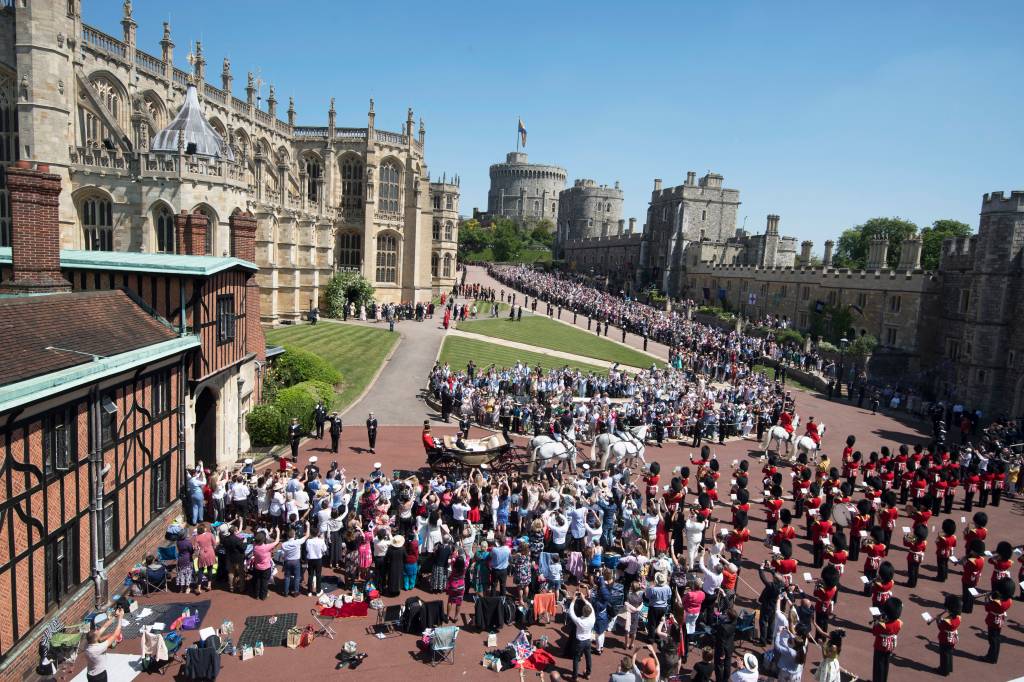 Met haar man heeft de in Rotterdam woonachtige royaltyfan vrijdag op het juiste moment een strategische plek ingenomen recht tegenover het kasteel en langs de route die de koets na afloop van de huwelijksplechtigheid met het net getrouwde stel aflegde. “We hebben de hele nacht buiten doorgebracht en hebben op de grond geslapen. Het was heel erg gezellig met alle mensen die daar ook waren”, vertelt ze. En met een knipoog: “Harry was vergeten een hotelkamer voor ons te boeken.”