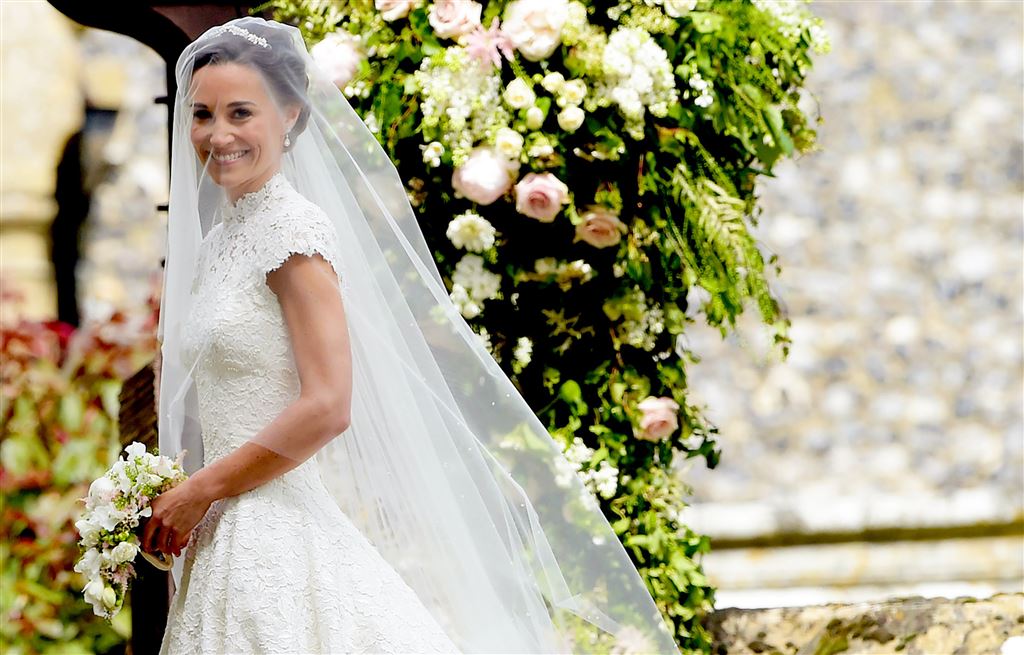 Onder grote belangstelling is Pippa Middleton zaterdagochtend getrouwd met bankier James Matthews. Het jongere zusje van Catherine, hertogin van Cambridge, liep in een kanten jurk van ontwerper Giles Deacon naar het altaar.
