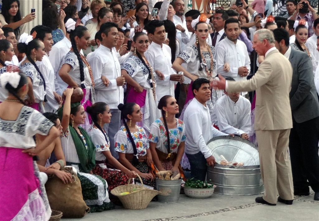 Ook bekeek de prins de kunsten van een traditionele dansgroep. De zoon van koningin Elizabeth hield het niet bij kijken alleen, Clarence House heeft een filmpje online gezet waarin te zien is dat Charles meedanst. Charles was dinsdag alleen op pad, zijn vrouw Camilla was in Mexico-Stad gebleven omdat ze zich niet lekker voelde.