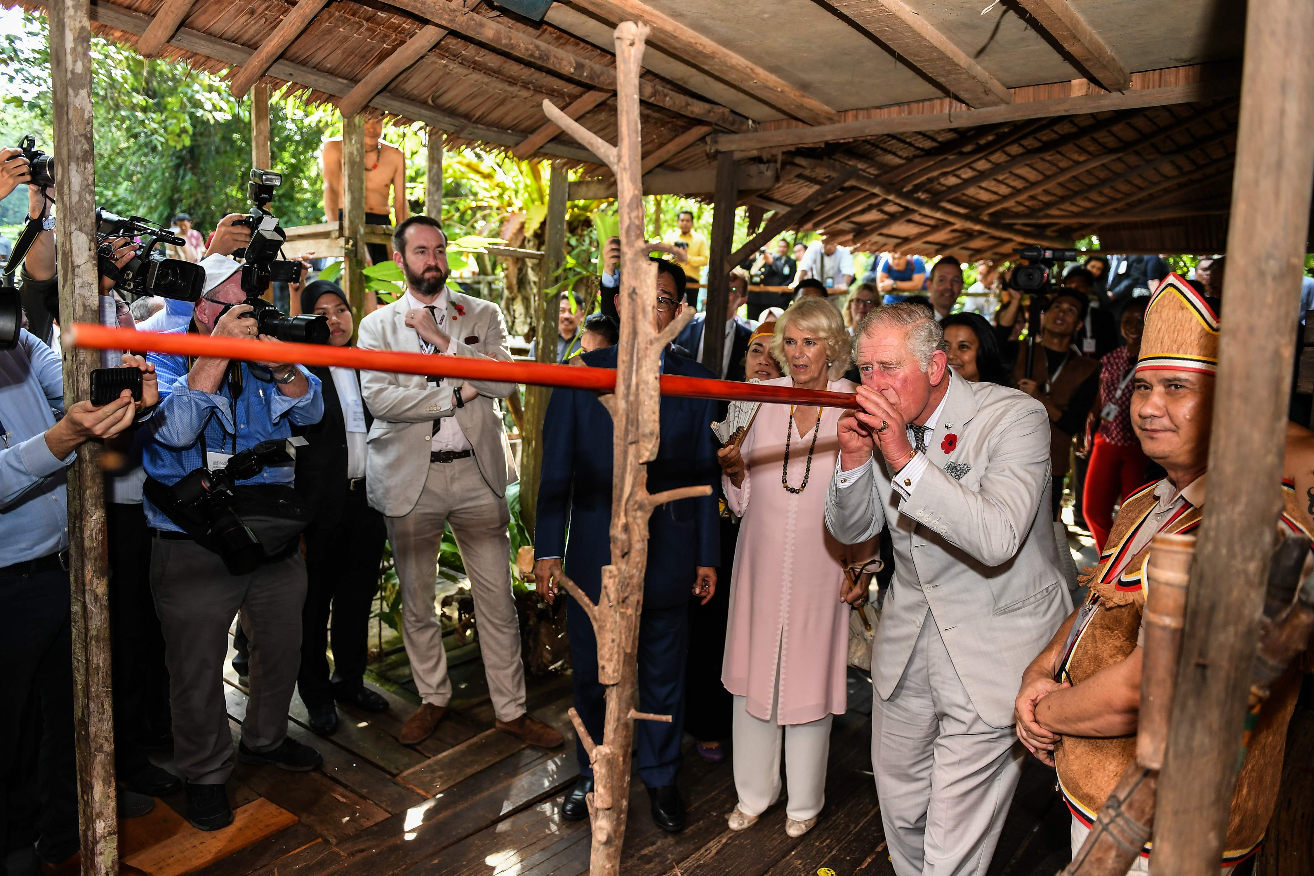 Charles en echtgenote Camilla kregen een uitgebreide rondleiding door het culturele dorp, waar ze kennismaakten met het leven van de verschillende stammen die in Sarawak wonen, zoals de Iban en Penan. De prins had een gesprek met vertegenwoordigers van de verschillende bevolkingsgroepen terwijl Camilla lokale kunstnijverheid bewonderde. Aan het slot van het uitstapje werd het paar meegevoerd op een eenvoudig bamboevlot, om op authentieke wijze te ervaren hoe de stammen zich over het water verplaatsen.