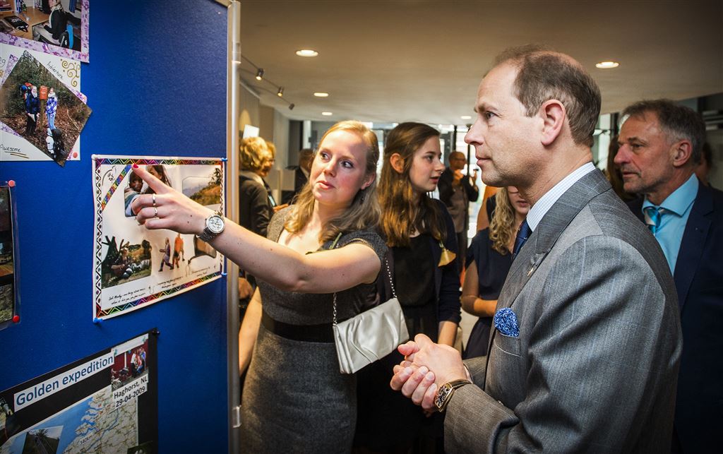 DEN HAAG – Prins Edward is in Nederland. Donderdagmiddag reikte de jongste zoon van koningin Elizabeth in Nieuwspoort in Den Haag de Gouden Awards uit. Voorafgaand aan de uitreiking bekeek de graaf van Wessex exposities van deelnemers aan het talentontwikkelingsprogramma.