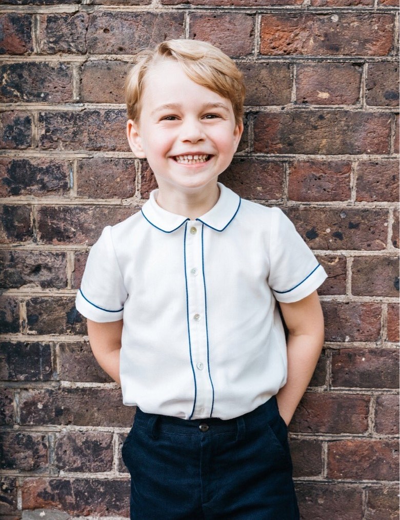 Speciaal voor de verjaardag van George hebben zijn ouders een nieuwe foto van het prinsje verspreid. Daarop is een lachende George te zien, poserend voor een muur in de tuin van Clarence House. De foto is gemaakt op 9 juli, de dag van de doop van prins Louis, het jongste kind van prins William en Kate.