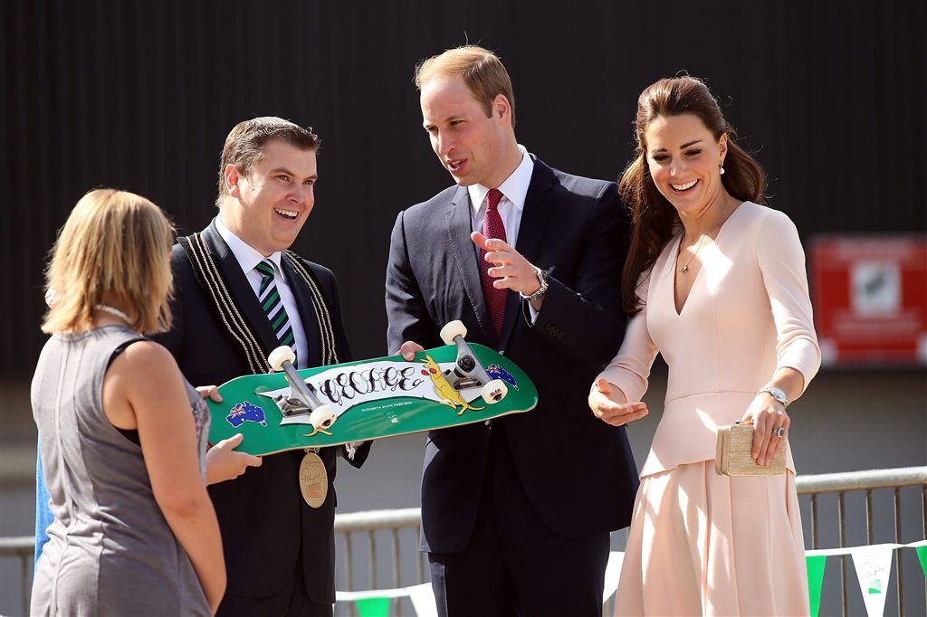 William en Catherine kregen het cadeau tijdens een bezoek aan een skatepark. Op het board staan de Australische vlag en twee kangoeroes afgebeeld. In het park hadden zich veel mensen verzameld om het stel te zien. Toen William het board kreeg, riep de menigte hem toe dat hij het even mocht proberen, maar dat aanbod sloeg de zoon van prins Charles af.