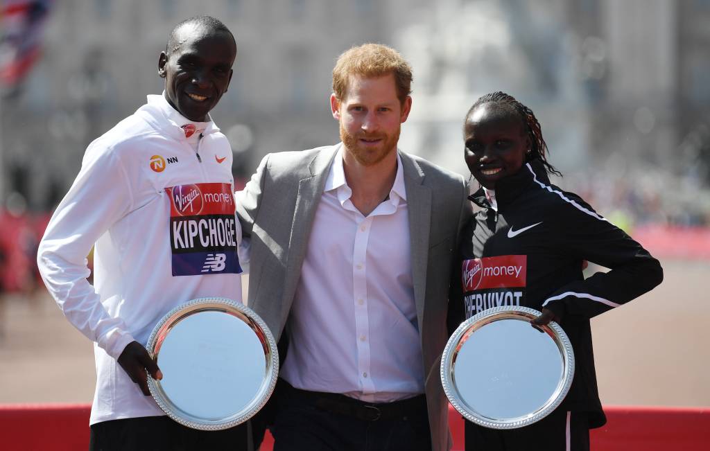 Harry feliciteerde de Keniaan Eliud Kipchoge. Hij won voor de derde keer de 1Londense marathon bij de mannen. Bij de vrouwen ging de zege in het klassieke loopnummer naar Vivian Cheruiyot. Ook zij komt uit Kenia.