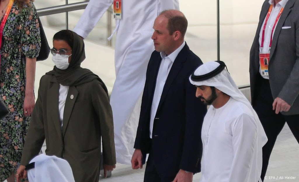 Prins William heeft donderdag een bezoek gebracht aan de wereldtentoonstelling Expo 2020 in Dubai. Daar kreeg de hertog van Cambridge een rondleiding van de kroonprins van Dubai, Sheikh Hamdan bin Mohammed Al Maktoum. Ook de cultuurminister van het land, Noura Al Kaabi, staat de prins bij tijdens zijn bezoek aan de tentoonstelling.