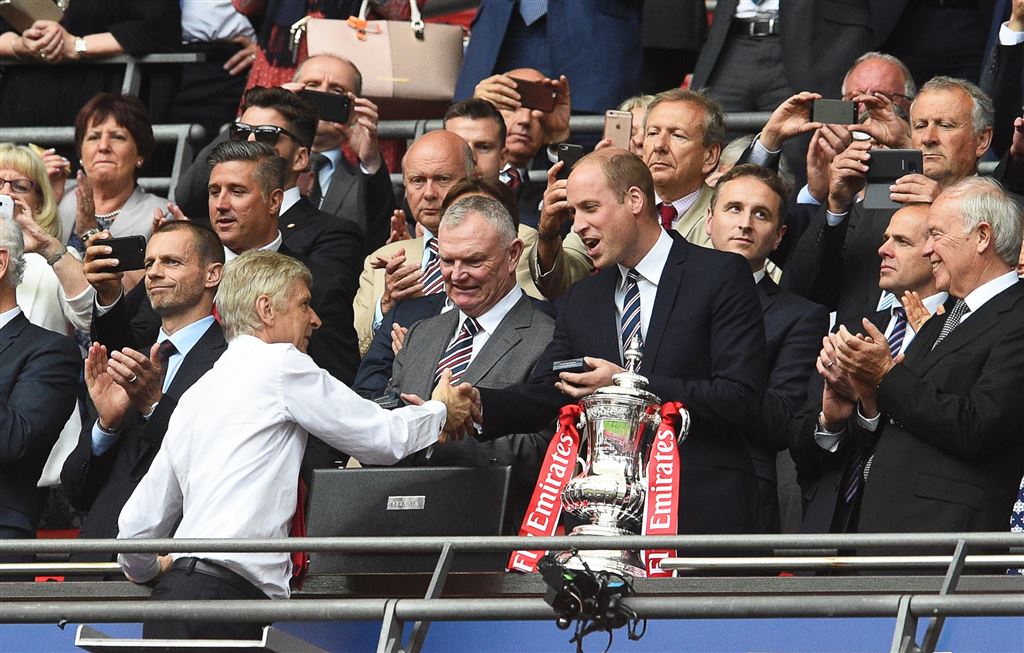 Prins William heeft zaterdag de voetballers van Arsenal de FA Cup uitgereikt. In de finale van het Engelse bekertoernooi won de club met 2-1 van Chelsea. De wedstrijd werd, traditiegetrouw, op Wembley in Londen gespeeld.