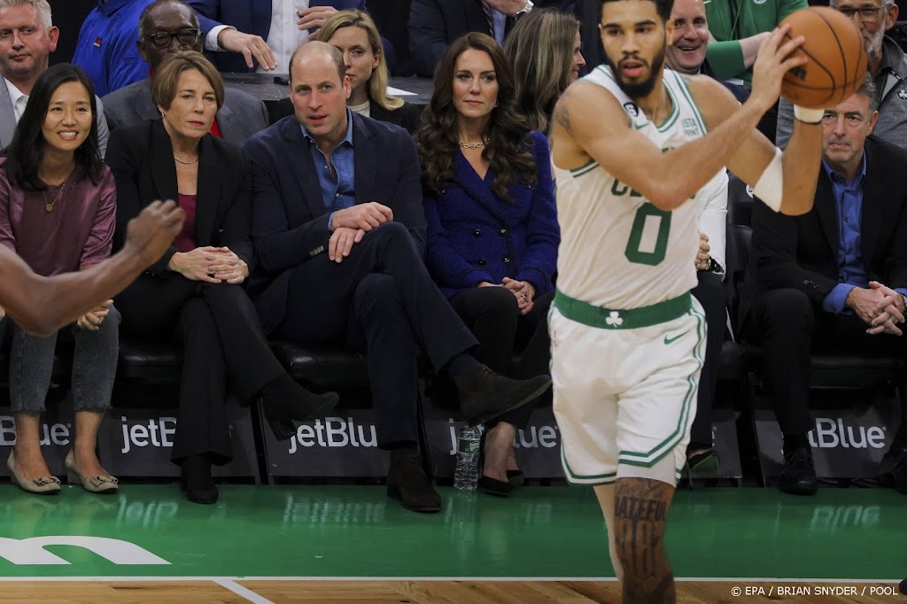 Onder toeziend oog van de Britse prins William en zijn vrouw Catherine hebben de Boston Celtics in eigen huis Miami Heat met 134-121 verslagen. De prins en prinses van Wales zagen basketballer Jayson Tatum met 49 punten zijn team bij de hand nemen. Het was de vijfde zege op rij van de club uit Boston.