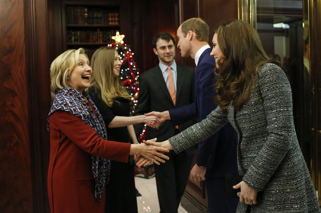 NEW YORK – Prins William en zijn vrouw Kate hebben maandagavond de hand geschud van Hillary Clinton en haar dochter Chelsea Clinton. De stichtingen Royal Foundation en Clinton Foundation hadden samen een receptie georganiseerd om de aandacht te vestigen op natuurbescherming.