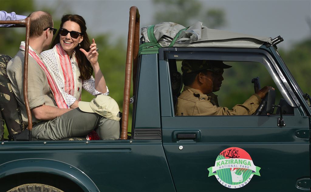 William en Kate maken een safari door het Kaziranga National Park. De kledingkeuze van Kate is de afgelopen dagen al meermaals onderwerp van gesprek geweest en ook ditmaal heeft Kate haar kleding aangepast aan de omstandigheden. William volgde het voorbeeld en stak zich ook in kleding die passend is voor een safari.