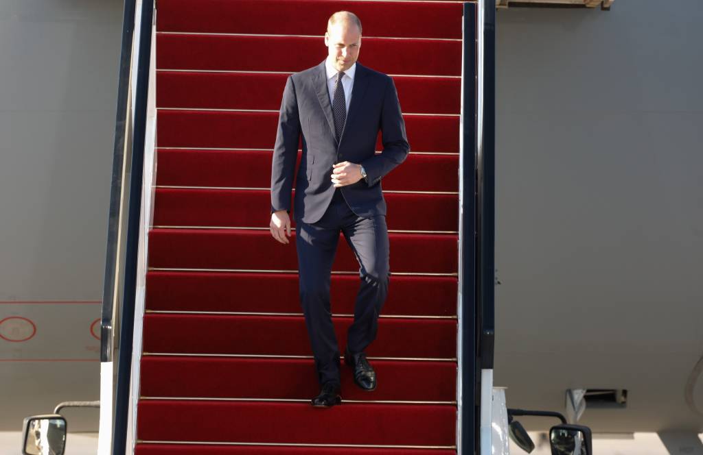 De hertog van Cambridge begon zondag zijn reis in Jordanië, waar hij onder meer op pad ging met de Jordaanse kroonprins Hoessein. Zondagavond keken de twee gebroederlijk naar de WK-voetbalwedstrijd tussen Engeland en Panama.