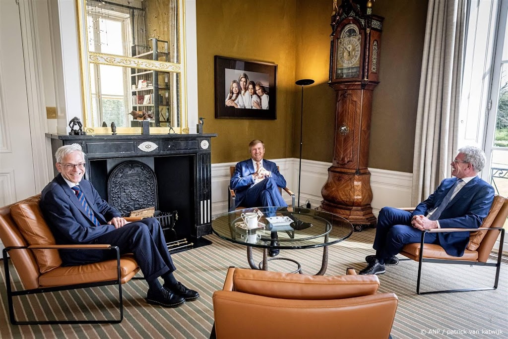 Koning Willem-Alexander heeft vrijdag bezoek gehad van informateurs Elbert Dijkgraaf en Richard van Zwol. De politici gingen langs bij de vorst op Paleis Huis ten Bosch in Den Haag.