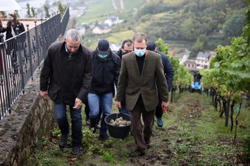 De Luxemburgse groothertog Henri heeft vrijdag zelf de schaar ter hand genomen om in het meest productieve en bekendste wijngebied van het land te helpen bij de druivenoogst. Dat gebeurde bij ‘Wormer Koeppchen’ aan de Moezel en nabij de kapel ter ere van de patroonheilige van de wijngaarden, Sint Donatus. Die beschermt volgens de gelovigen tegen bliksem, onweer, hagelsteen, storm en vuur.