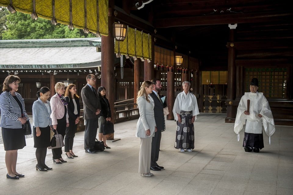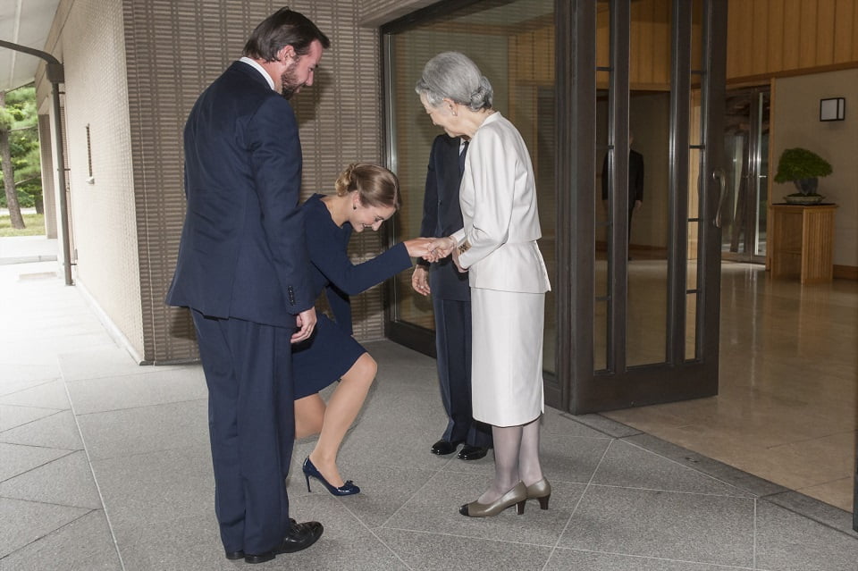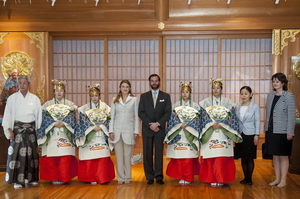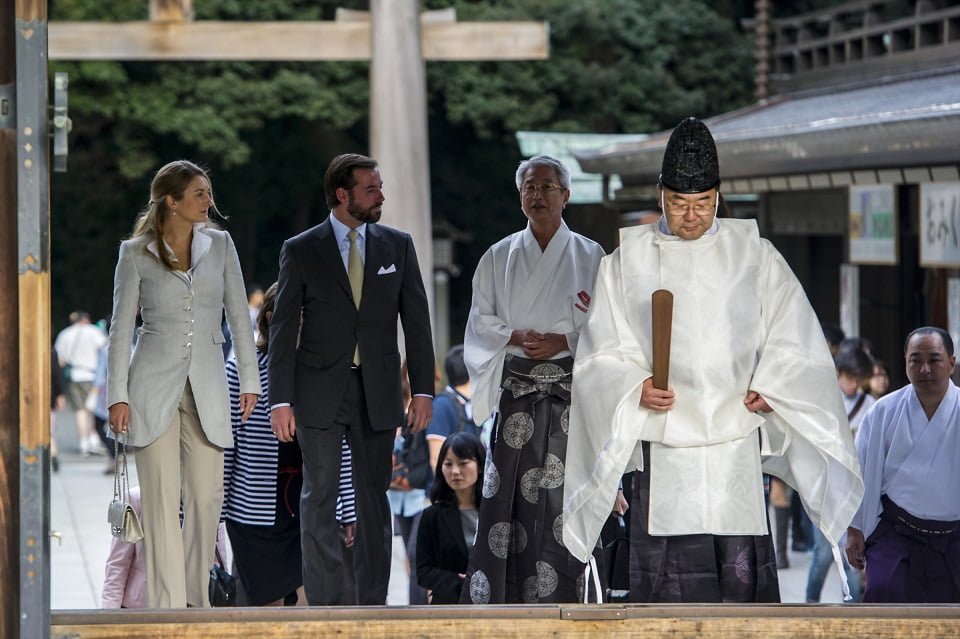 Guillaume en Stéphanie bezochten in Tokio onder meer het Meiji-heiligdom, genoemd naar de keizer tijdens wiens regering Tokio in de 19e eeuw hoofdstad werd van Japan, en het land zich meer openstelde voor ideeën en producten uit het buitenland. Keizer Meiji is de overgrootvader van de huidige keizer Akihito, die donderdag de Luxemburgse bezoekers een lunch aanbiedt.