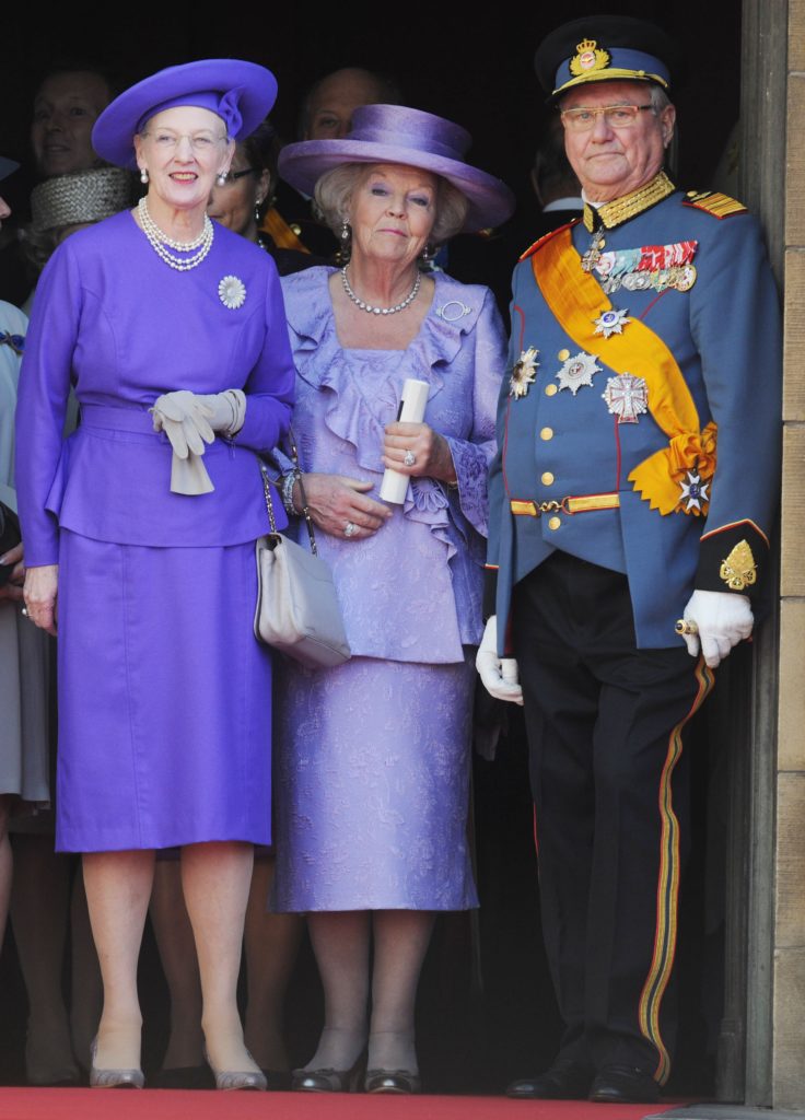 Koningin Beatrix met koningin Margrethe van Denemarken en haar man prins Henri.