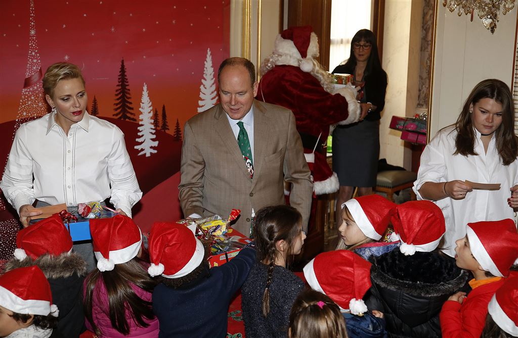 Alle kinderen die op het paleis waren uitgenodigd kregen een cadeau van het prinselijk paar. Ze droegen daarbij allemaal een kerstmuts en ook Albert had zijn best gedaan om er ‘kerstelijk’ uit te zien. De vorst droeg een groene kerstdas met sneeuwpoppen erop. Charlène ging voor een chic uiterlijk met een witte blouse, een felrode jas en zilveren pumps.