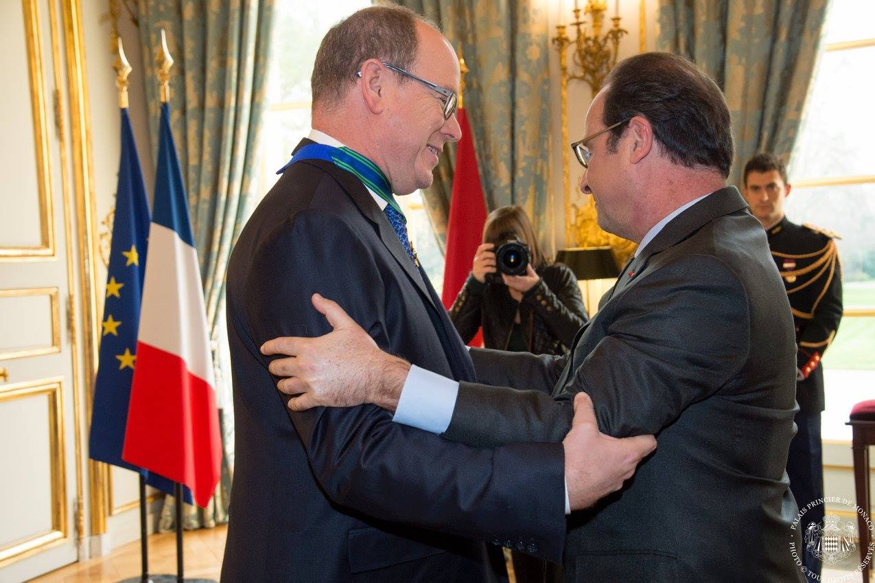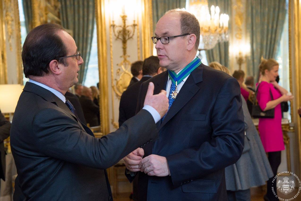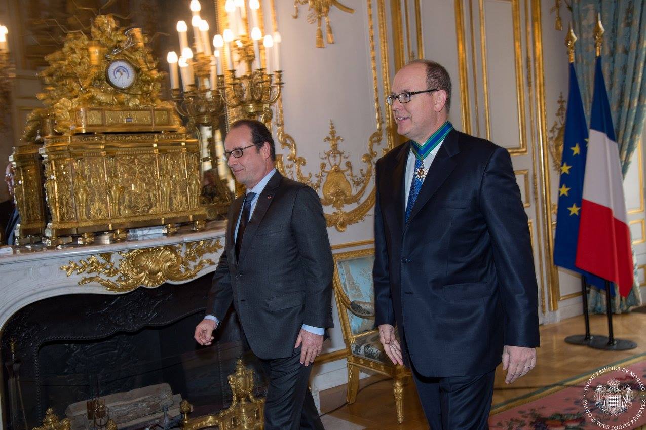 PARIJS – De Franse president François Hollande heeft dinsdag in het Elysée paleis in Parijs een onderscheiding overhandigd aan prins Albert II van Monaco. Die kreeg de versierselen omgehangen behorend bij zijn benoeming tot commandeur van maritieme verdienste.