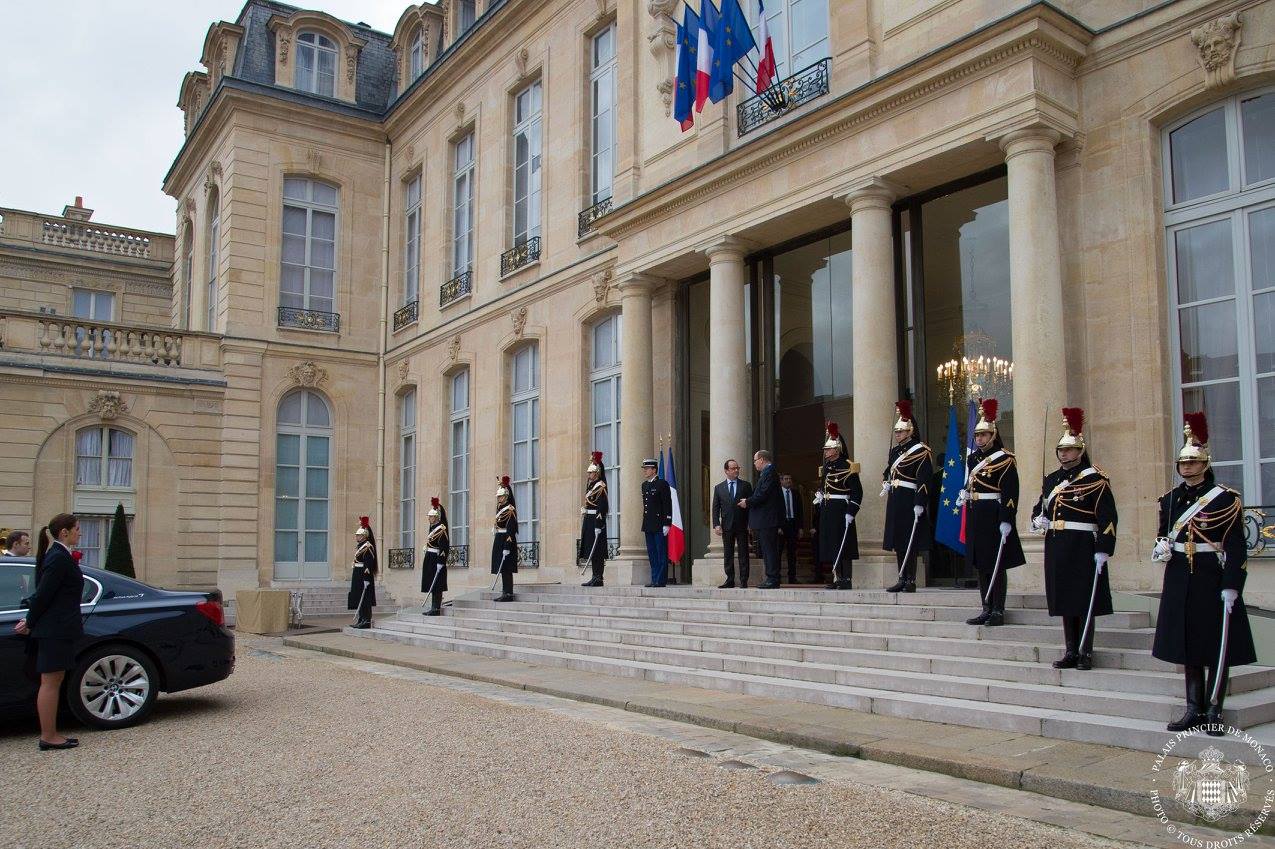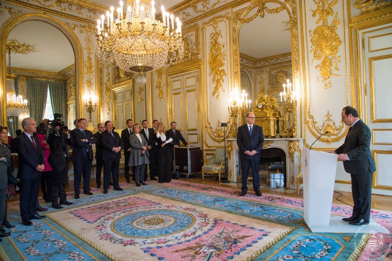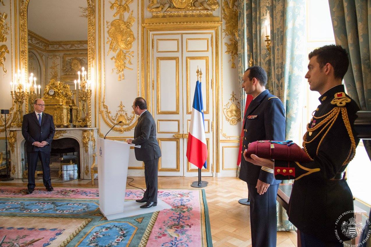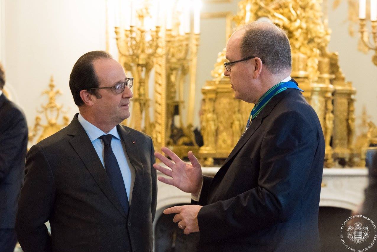PARIJS – De Franse president François Hollande heeft dinsdag in het Elysée paleis in Parijs een onderscheiding overhandigd aan prins Albert II van Monaco. Die kreeg de versierselen omgehangen behorend bij zijn benoeming tot commandeur van maritieme verdienste.