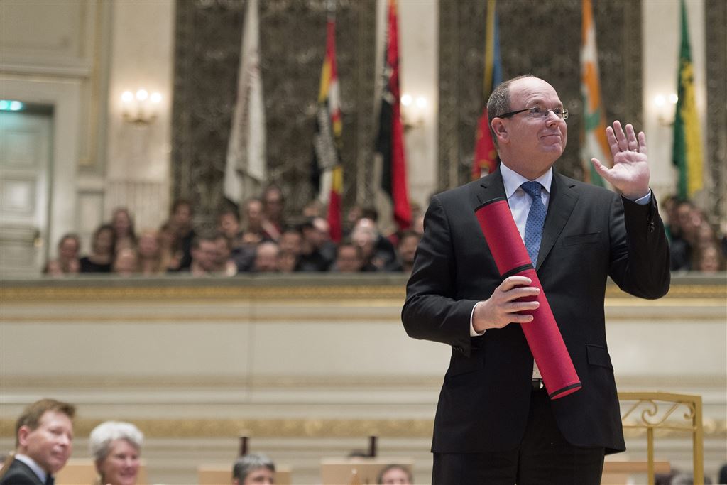 BERN – Prins Albert II van Monaco heeft zaterdag een eredoctoraat gekregen van de universiteit van Bern. Hij kwam zijn titel hoogstpersoonlijk ophalen in de Zwitserse stad.