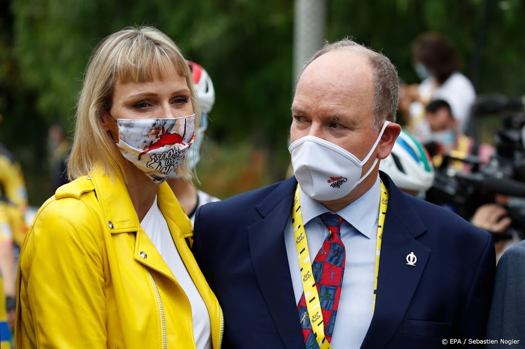 Op foto’s is te zien hoe het prinselijk paar bij de start van de drieweekse wielerronde aanwezig is. Vanwege het coronavirus dragen de royals mondkapjes. Daarmee voldeden ze aan de dringende oproep van Tourbaas Christian Prudhomme. Die had toeschouwers die wilden komen kijken gevraagd mondkapjes te dragen.