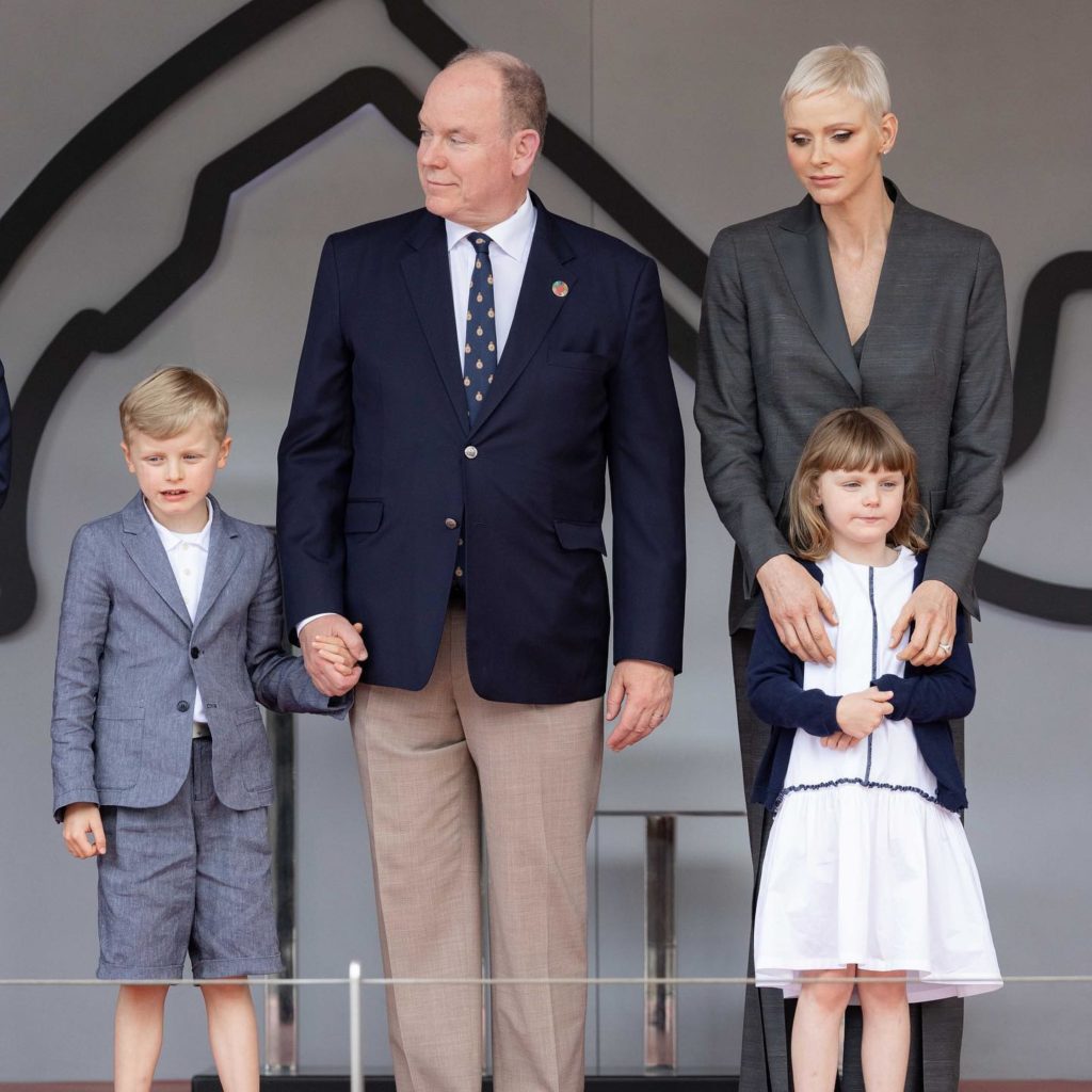 Op foto’s is te zien dat ze vanaf een verhoging naar de race met elektrische sportwagens kijken, waarbij Gabriella en Jacques hun vingers in hun oren houden vanwege herrie. Het gezin zag hoe de Belg Stoffel Vandoorne (Mercedes) de race op het beroemde stratencircuit won. De Nieuw-Zeelander Mitch Evans (Jaguar) reed naar de tweede plaats.